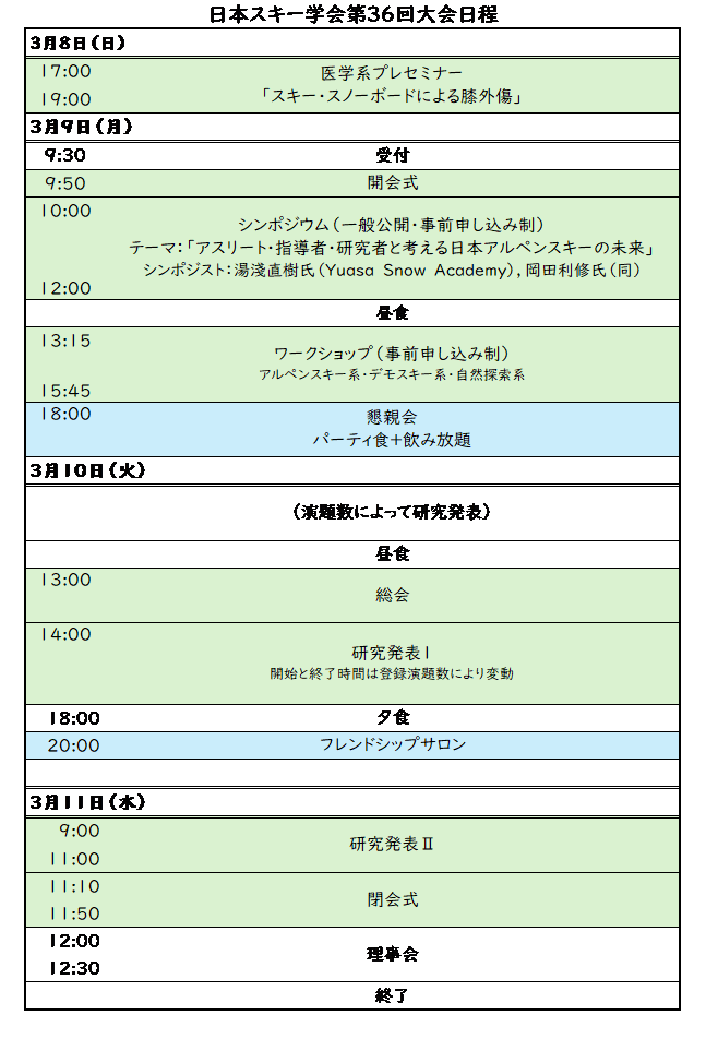 日本スキー学会第36回大会は、2026年3月8日(日)から11日(水)までの4日間、長野県小諸市・高峰高原の『高峰マウンテンリゾート』にて開催します。