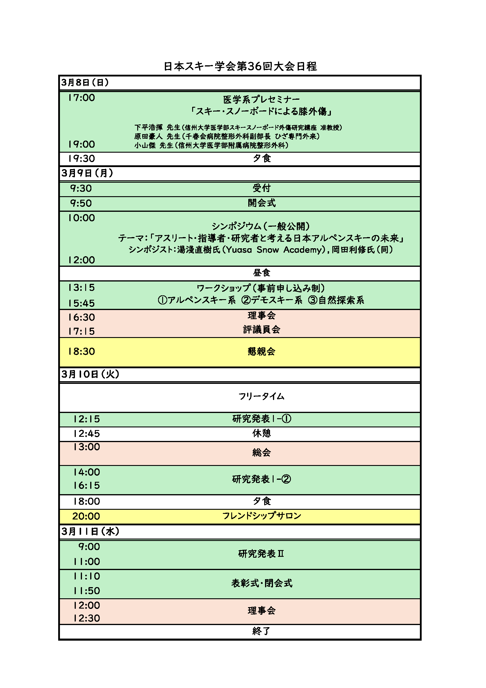 3.日本スキー学会第36回大会 日程概要